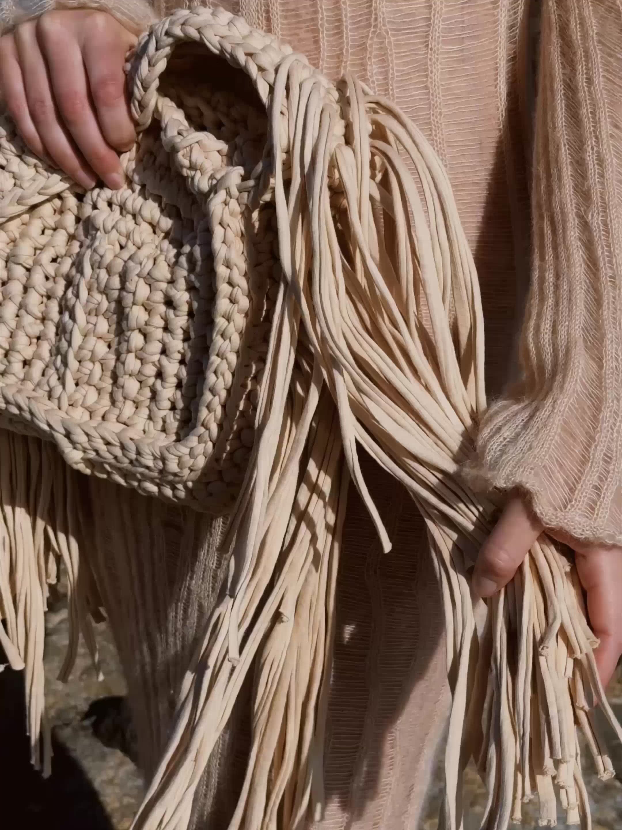hand-crocheted from upcycled cotton remnants. finished with subtle fringe detailing.